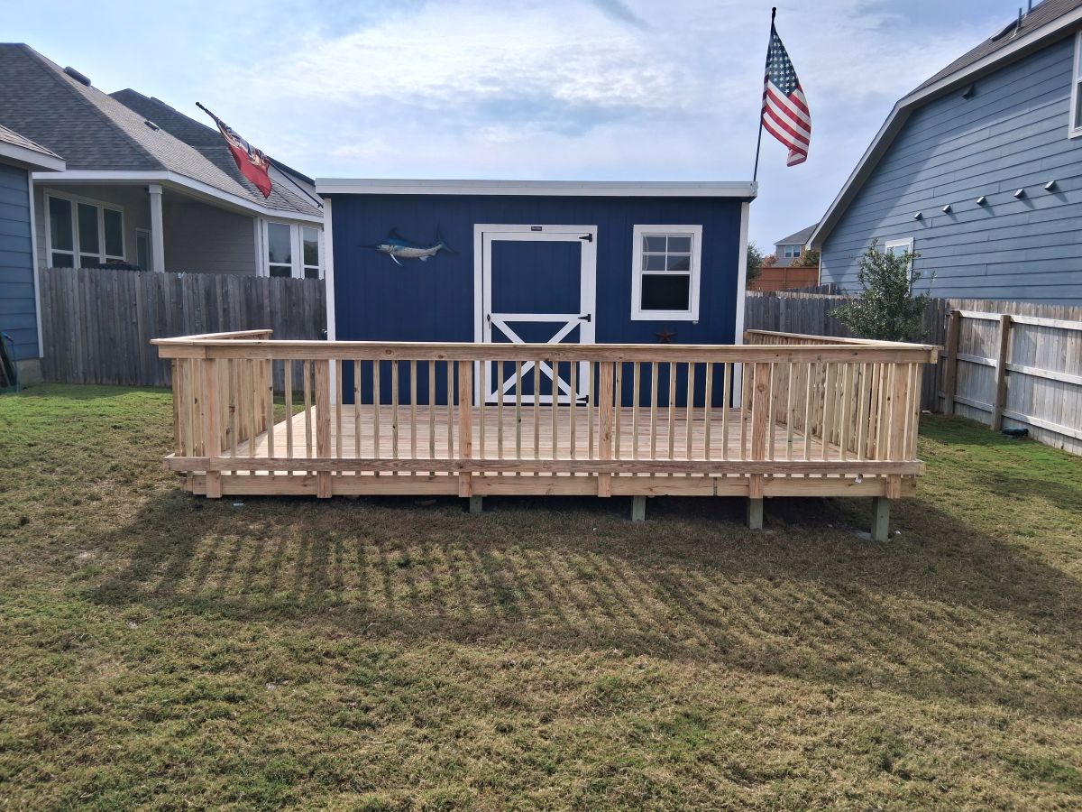 Durable wood fencing and deck construction that enhances privacy and outdoor living space.